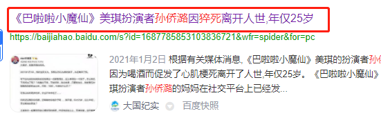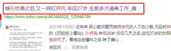 伴隨著新年腳步的到來,本該高高興興,但是卻有一些負面的新聞不斷的爆出:《巴啦啦小魔仙》美琪扮演者孫僑潞因猝死離開人世,年僅25歲,在隔不久的時間又有新聞發布出:繼孫僑潞之后,又一網紅猝死,年近27歲……
